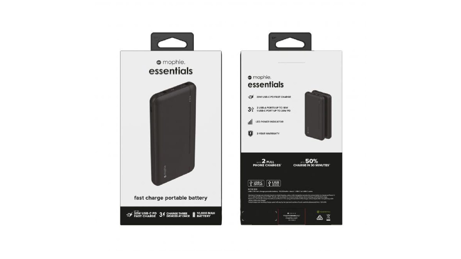 mophie Essential PD 20W 2A1C 外置電池 10,000mAh 充電器